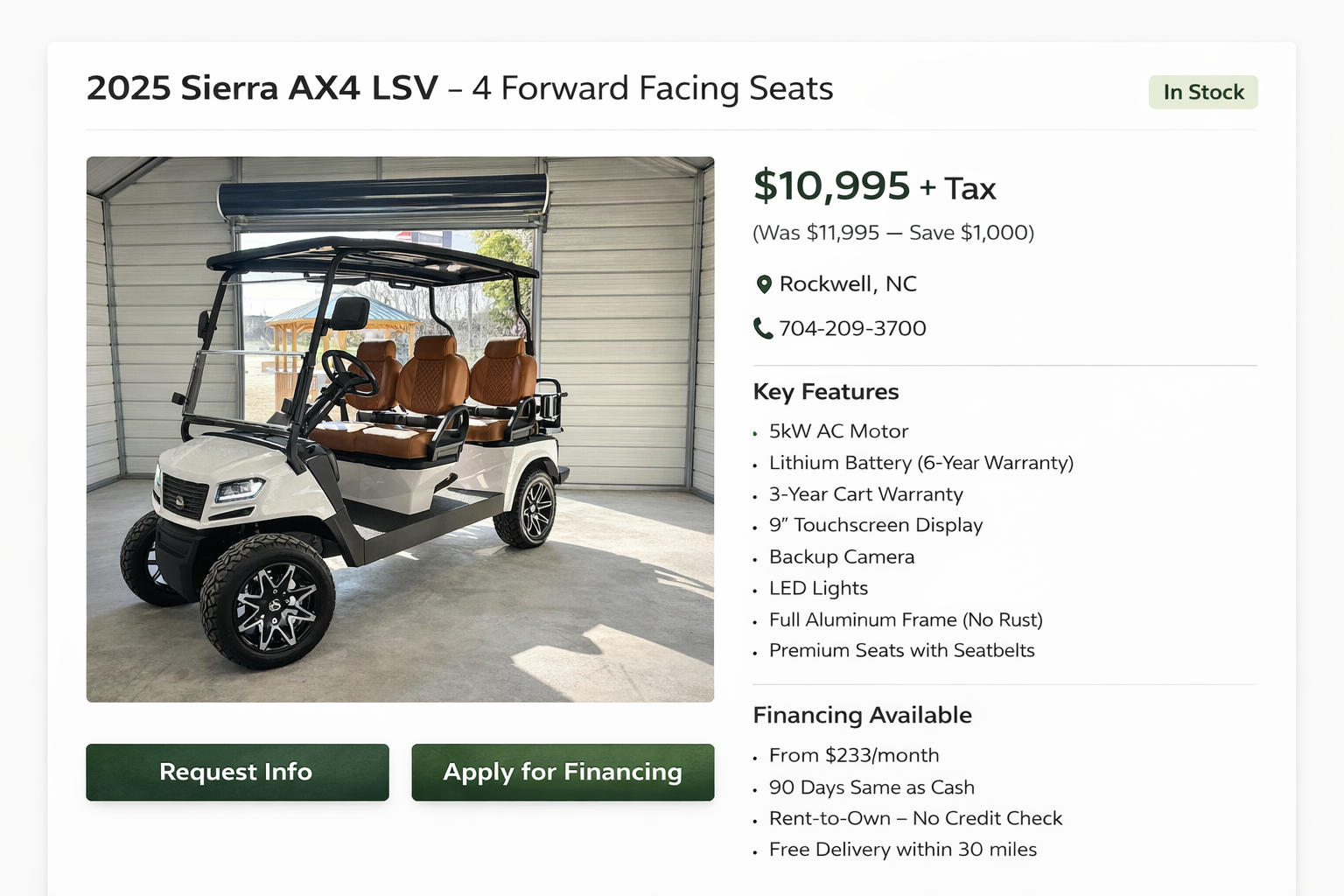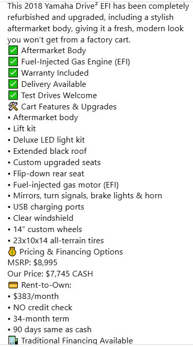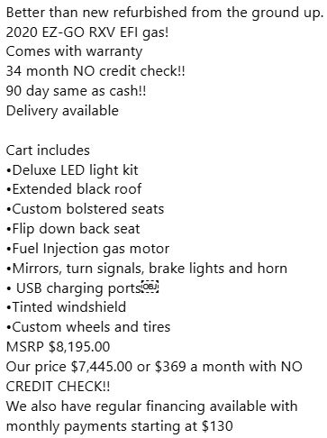 Ask about our other New Golf Cart Brands and Specials!