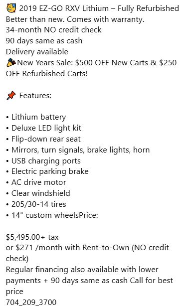 🥳 2019 EZ-GO RXV Lithium – Fully Refurbished